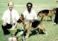 Every day seems to be summer in Jamaica, and since I retired from regular hours in the chemicals business, every day is like Saturday or a summer vacation to me. Still, when the Jamaica GSD club called me to fill in for an ill judge, I had another judging job I was committed to. As it turned out, they could not get a last-minute substitute, so they changed the show date and when they found I was available for the second proposed date, it was a deal. I would come to judge in Jamaica for the third time. The first was a GSD-only specialty, the second was an all-breed show with GSDs making up nearly half the entry, and this time the three largest clubs cooperated in putting on a 3-breed show: GSDs, Rotties, and Dobes. Gerard O’Shea, an Irishman living in Sweden, did the other two breeds while I evaluated the Shepherds. Bo Nyman of Sweden (breeder of the beautiful Triumph’s Gucci, who now lives in the U.S.) was originally scheduled to judge the GSDs, but his precarious health took a serious downturn quite close to the show date.